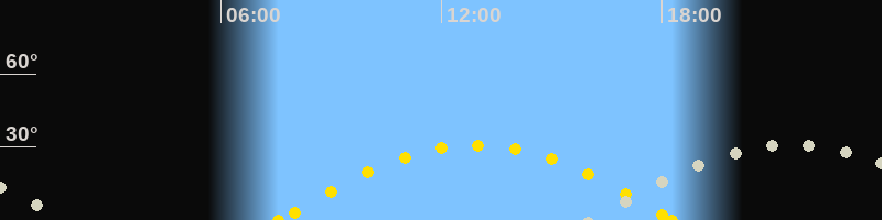| Höchster Sonnenstand (Kulmination) | 12:56 Uhr (h = 30.8°) |