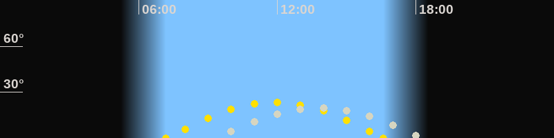 | Höchster Sonnenstand (Kulmination) | 11:53 Uhr (h = 23.3°) |