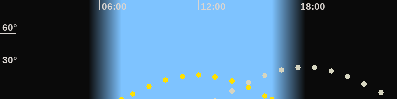 | Höchster Stand (Kulmination) | 18:18 Uhr (h=28.9°) |