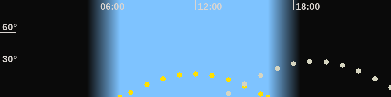 | Sonnenuntergang | 16:26 Uhr im Südwesten (αAz = 242.1°) |
