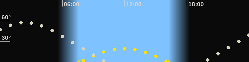 | Höchster Sonnenstand (Kulmination) | 11:56 Uhr (h = 19.4°) |