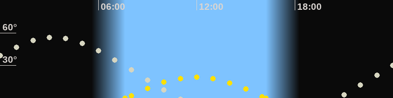 | Höchster Sonnenstand (Kulmination) | 11:56 Uhr (h = 19.2°) |