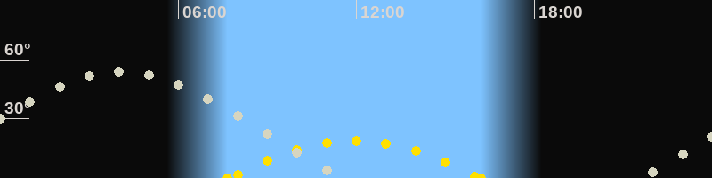 | Höchster Sonnenstand (Kulmination) | 11:56 Uhr (h = 19°) |