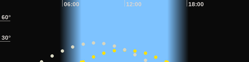 | Höchster Stand (Kulmination) | 09:10 Uhr (h=28.1°) |