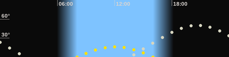 | Höchster Sonnenstand (Kulmination) | 12:04 Uhr (h = 16.1°) |