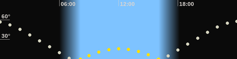 | Höchster Sonnenstand (Kulmination) | 12:06 Uhr (h = 15.9°) |