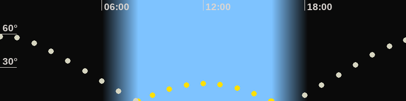 | Höchster Sonnenstand (Kulmination) | 12:06 Uhr (h = 15.9°) |