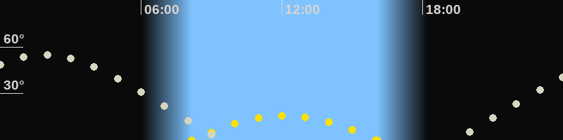 | Höchster Sonnenstand (Kulmination) | 12:07 Uhr (h = 15.9°) |