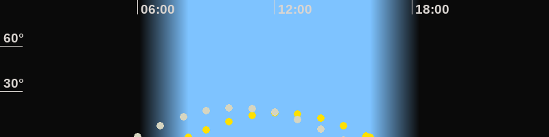 | Höchster Sonnenstand (Kulmination) | 12:13 Uhr (h = 16.2°) |