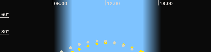 | Höchster Sonnenstand (Kulmination) | 12:13 Uhr (h = 16.2°) |