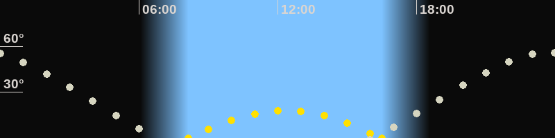 | Höchster Sonnenstand (Kulmination) | 12:19 Uhr (h = 18.1°) |