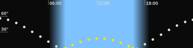 | Höchster Sonnenstand (Kulmination) | 12:19 Uhr (h = 18.3°) |