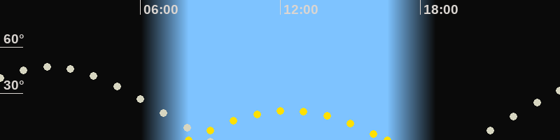 | Höchster Sonnenstand (Kulmination) | 12:20 Uhr (h = 18.9°) |