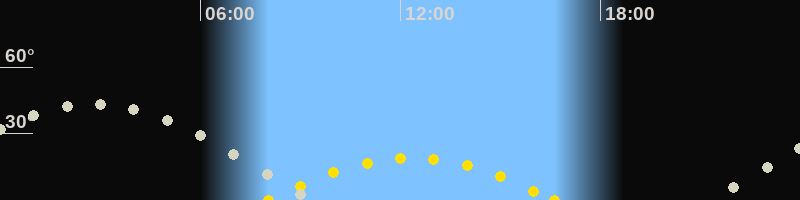 | Höchster Sonnenstand (Kulmination) | 12:21 Uhr (h = 19.1°) |