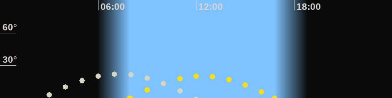 | Höchster Sonnenstand (Kulmination) | 12:22 Uhr (h = 20.5°) |