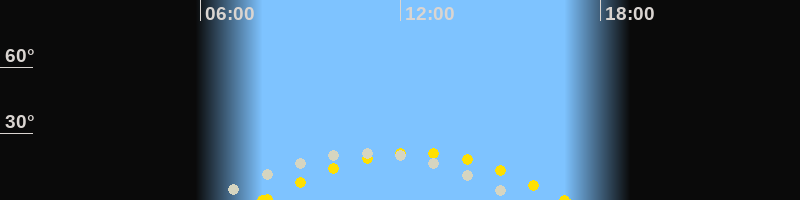 | Höchster Sonnenstand (Kulmination) | 12:23 Uhr (h = 21.5°) |