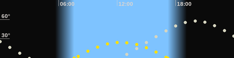 | Sonnenaufgang | 07:36 Uhr im Südosten (αAz = 113.2°) |