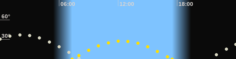 | Höchster Sonnenstand (Kulmination) | 12:24 Uhr (h = 27.5°) |