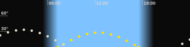 | Sonnenuntergang | 17:30 Uhr im Westen (αAz = 252.6°) |