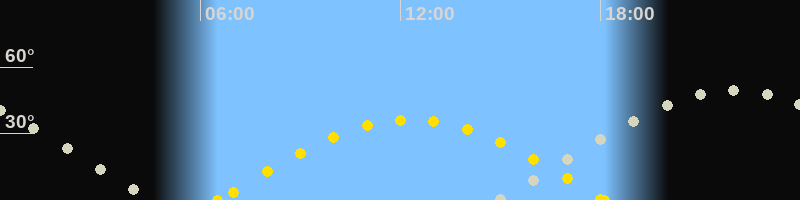 Höchster Sonnenstand (Kulmination)12:19 Uhr (h = 36.2°)
