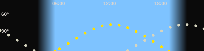 | Höchster Sonnenstand (Kulmination) | 13:11 Uhr (h = 47.1°) |