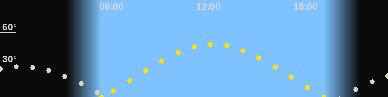 | Sonnenaufgang | 06:17 Uhr im Osten (αAz = 73.6°) |