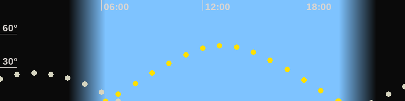 | Sonnenaufgang | 06:15 Uhr im Osten (αAz = 73°) |