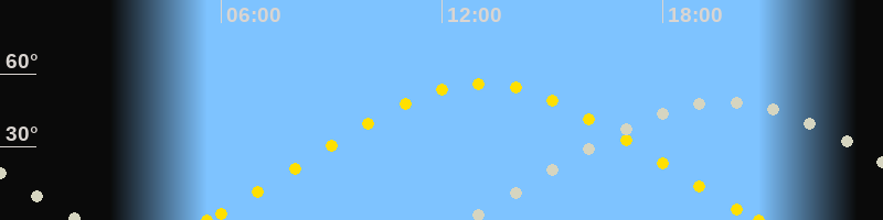 | Höchster Sonnenstand (Kulmination) | 13:06 Uhr (h = 56°) |