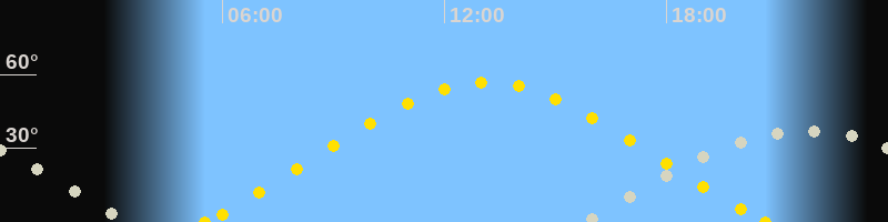 | Höchster Sonnenstand (Kulmination) | 13:06 Uhr (h = 56.8°) |