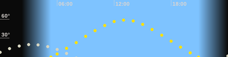 | Höchster Sonnenstand (Kulmination) | 13:06 Uhr (h = 58.7°) |