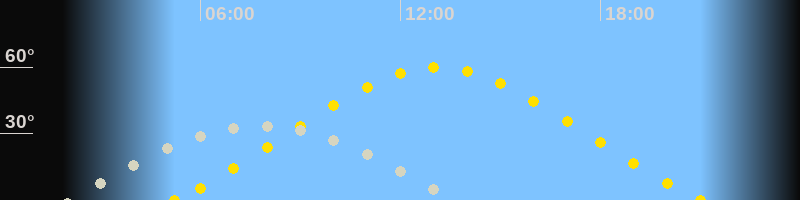 | Höchster Sonnenstand (Kulmination) | 13:06 Uhr (h = 59.8°) |
