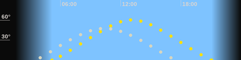 | Höchster Sonnenstand (Kulmination) | 13:07 Uhr (h = 60.3°) |