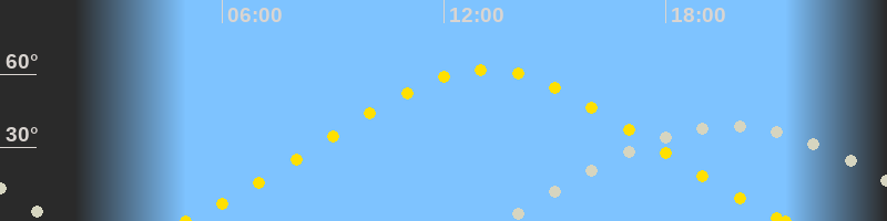 | Höchster Sonnenstand (Kulmination) | 13:08 Uhr (h = 61.9°) |
