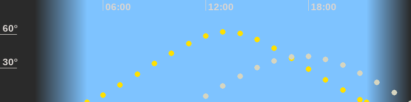 | Höchster Sonnenstand (Kulmination) | 13:14 Uhr (h = 62.3°) |