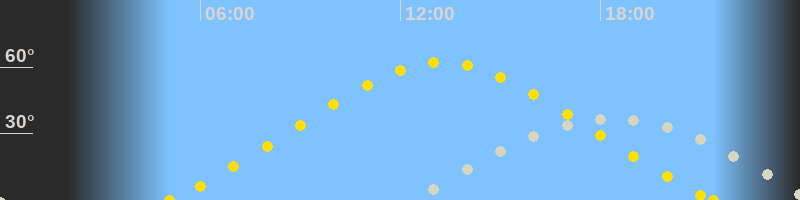| Höchster Sonnenstand (Kulmination) | 13:14 Uhr (h = 62.2°) |