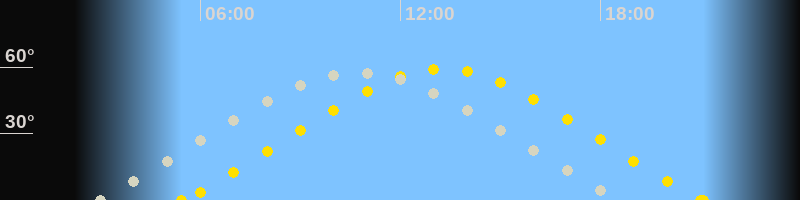 | Höchster Sonnenstand (Kulmination) | 13:16 Uhr (h = 59.2°) |