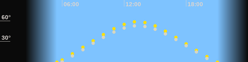 | Höchster Sonnenstand (Kulmination) | 13:16 Uhr (h = 58.6°) |