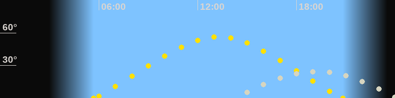 | Höchster Sonnenstand (Kulmination) | 13:16 Uhr (h = 56.6°) |