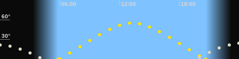 | Höchster Sonnenstand (Kulmination) | 13:15 Uhr (h = 54.9°) |