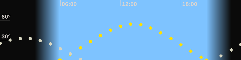| Höchster Sonnenstand (Kulmination) | 13:15 Uhr (h = 54°) |
