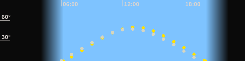 | Sonnenaufgang | 06:13 Uhr im Osten (αAz = 71.7°) |