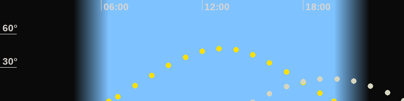 | Sonnenaufgang | 06:27 Uhr im Osten (αAz = 76.9°) |