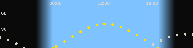 | Sonnenaufgang | 06:33 Uhr im Osten (αAz = 79.3°) |