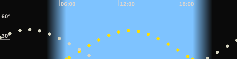 | Höchster Sonnenstand (Kulmination) | 13:06 Uhr (h = 43.6°) |
