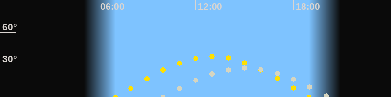 | Höchster Sonnenstand (Kulmination) | 13:01 Uhr (h = 37.8°) |