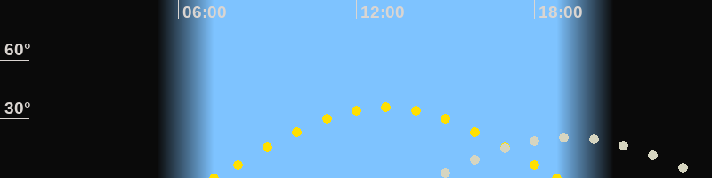 | Sonnenaufgang | 07:12 Uhr im Osten (αAz = 94.5°) |