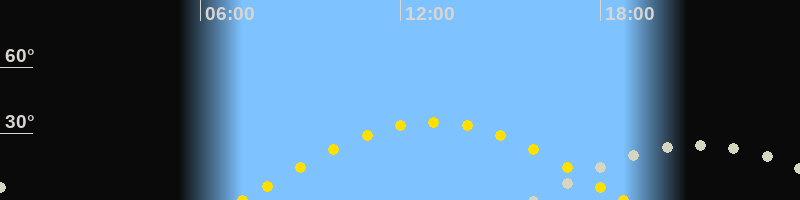 | Sonnenaufgang | 07:15 Uhr im Osten (αAz = 95.8°) |