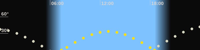 | Höchster Sonnenstand (Kulmination) | 12:58 Uhr (h = 33.5°) |
