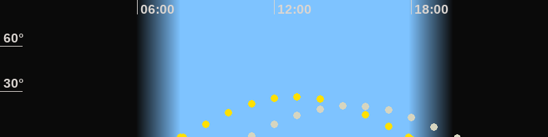 | Höchster Sonnenstand (Kulmination) | 12:54 Uhr (h = 26.6°) |