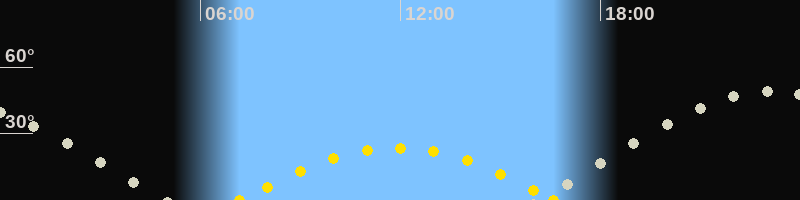 | Höchster Sonnenstand (Kulmination) | 11:53 Uhr (h = 23.4°) |